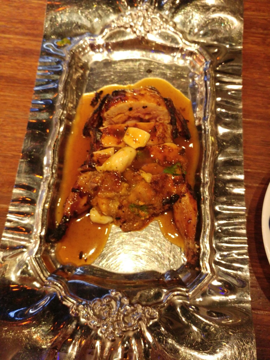Quail stuffed with smoked eggplant